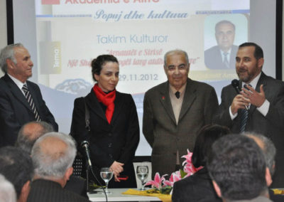 Takimi i cili u zhvilluar në amfiteatrin e AIITC, ditën e enjte më dt. 29.11.2012, zgjoi interesin e shumë personaliteteve të botës akademike, kulturore e diplomatike shqiptare – bashkëpunëtorë të AIITC, si Rektori i Akademisë Pedagogjike të Tiranës Prof. Dr. Musa Kraja, Drejtori i Sektorit të Enciklopedisë në Akademinë e Shkencave Prof. Dr. Muharrem Dezhgiu, gjuhëtarja Dr. Genciana Abazi – Egro, ish ambasadorët zotërinjtë Sulejman Tomçini, Shaban Murati, Qazim Tepshi e Faruk Borova dhe një sërë personalitetesh të tjera miq e dashamirës të AIITC.