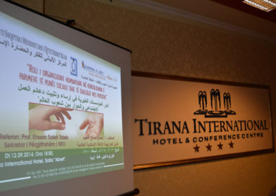 Më pas e mori fjalën prof. Ehssan Saleh Taieb, i cili e ndau ligjëratën e tij në dy pjesë. Në pjesën e parë bëri një përshkrim të shpejtë të IIRO, qëllimeve, strukturës administrative dhe të punës së kryer ndër vite. Ndërsa në pjesën e dytë prof. Ehssan Taieb shpjegoi parimet bazë të punës humanitare dhe ndikimit që ky mision ka në zhvillimet sociale.