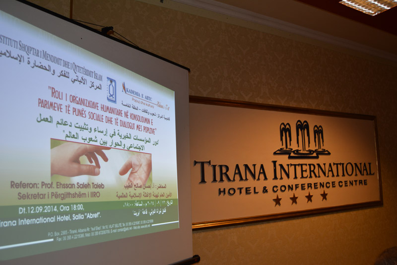 Takimin e hapi Dr. Ramiz Zekaj, i cili bëri një prezantim të përgjithshëm të Akademisë së AIITC “Popuj dhe Kultura”, qëllimeve dhe kontributit të saj në kulturën shqiptare. Gjithashtu ai prezantoi një jetëshkrim shkurtër të Prof. Ehssan Taieb dhe IIRO si organizatë humanitare në dobi të komuniteteve në nevojë. Pas prezantimit për të pranishmit u shfaq një raport filmik rreth veprimtarisë humanitare të IIRO për vitin 2014.