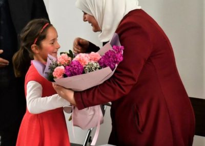 Ndërsa mësuesja Marjeta Çurumi në ligjëratën e saj “Mirënjohja ndaj gruas, respekt për jetën”, u përqendrua në pozicionin e femrës në familje e shoqëri, duke dhënë një mesazh të fortë për mbrojtjen e dinjitetit të tyre. Ajo vuri theksin në rëndësinë e respektimit të të drejtave të grave dhe mbështetjen e tyre.